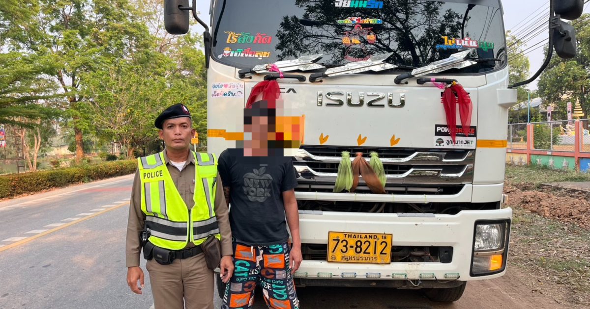 สภ.นาอิน รับเเจ้งรถพ่วงบรรทุกหินขับขี่โดยไม่มีสิ่งปกคลุม
