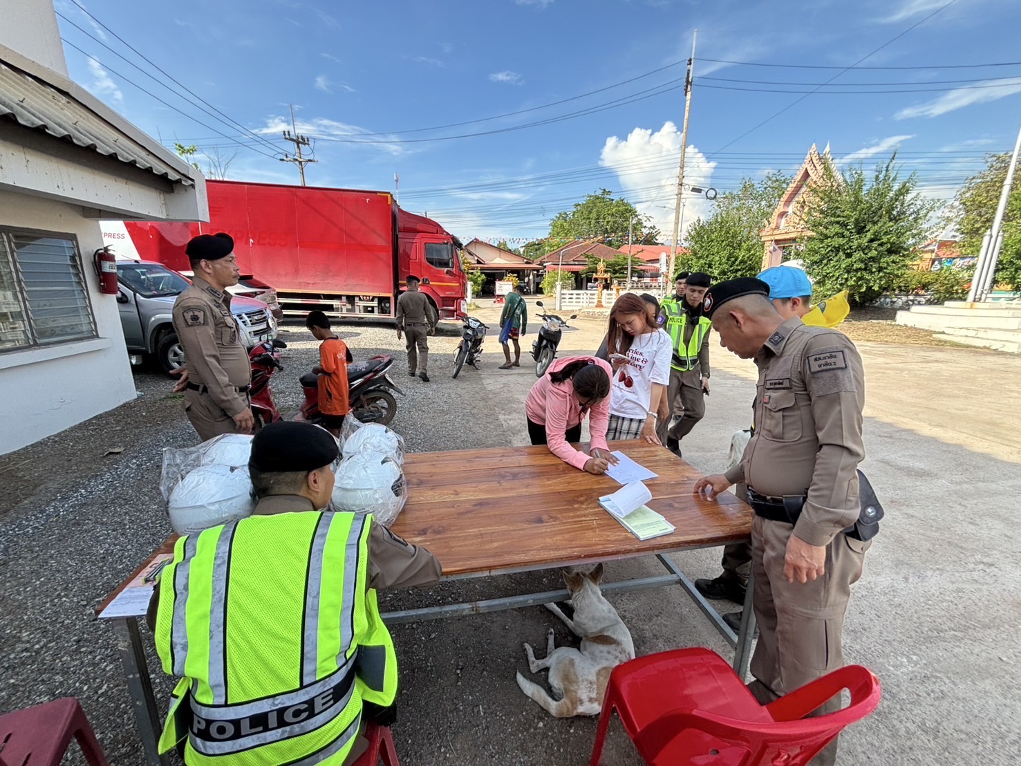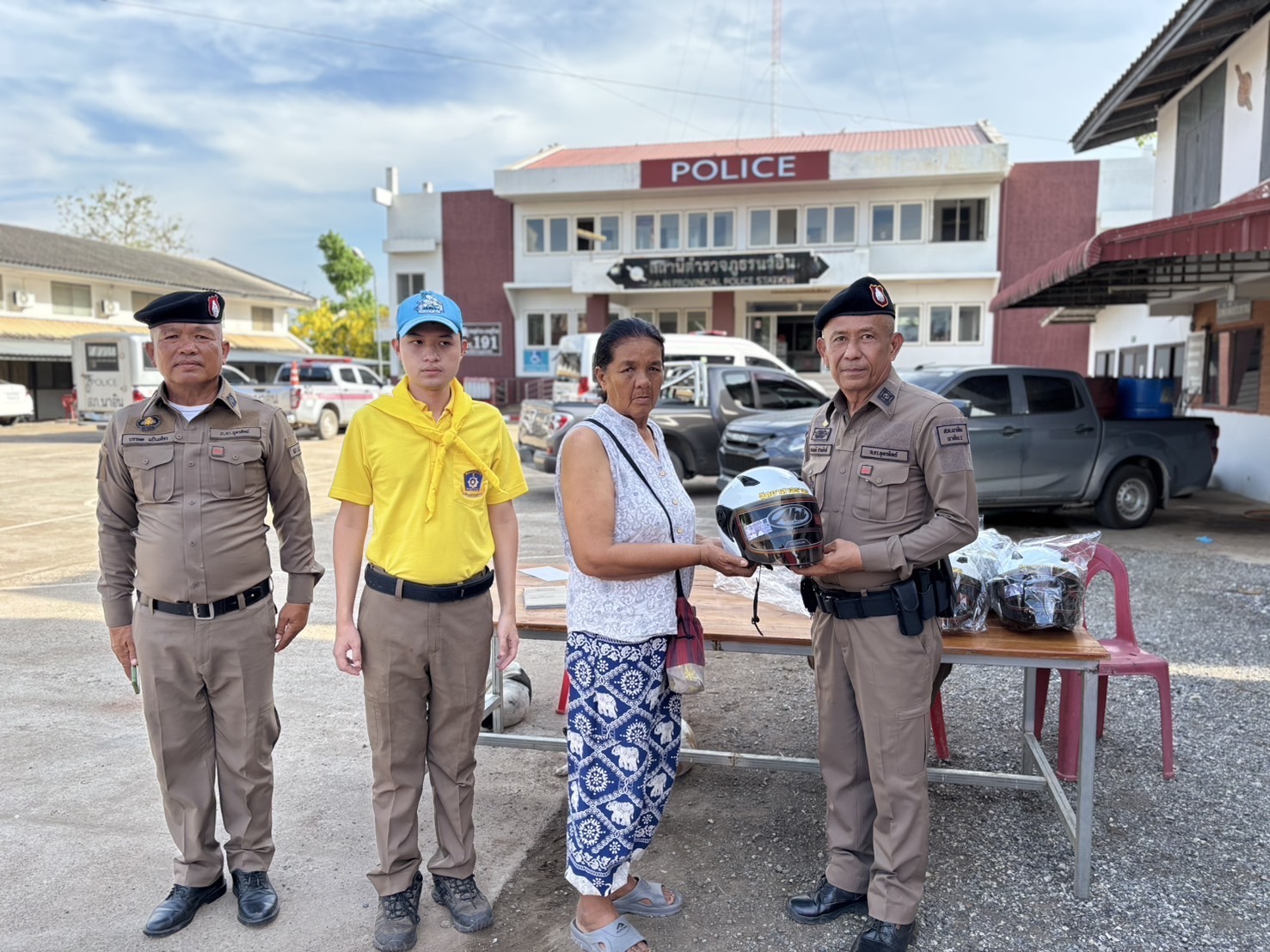 เเละแจกหมวกกันน็อคตามโครงการ จับ จ่าย แจก เพื่อให้ประชาชนรับหมวกกันน็อคไว้ใช้ในการขับขี่