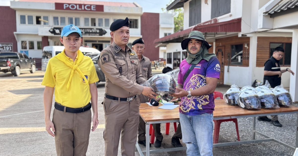 เเละแจกหมวกกันน็อคตามโครงการ จับ จ่าย แจก เพื่อให้ประชาชนรับหมวกกันน็อคไว้ใช้ในการขับขี่