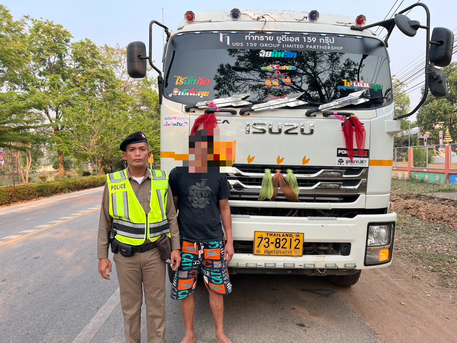 สภ.นาอิน รับเเจ้งรถพ่วงบรรทุกหินขับขี่โดยไม่มีสิ่งปกคลุม